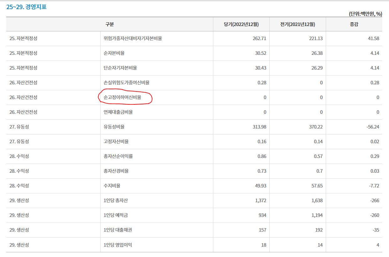 3. 아래로 더내려가 25번 위험가중자산대비 자기자본비율 ⇒ 8%이상 안전 , 11%이상 우수합니다