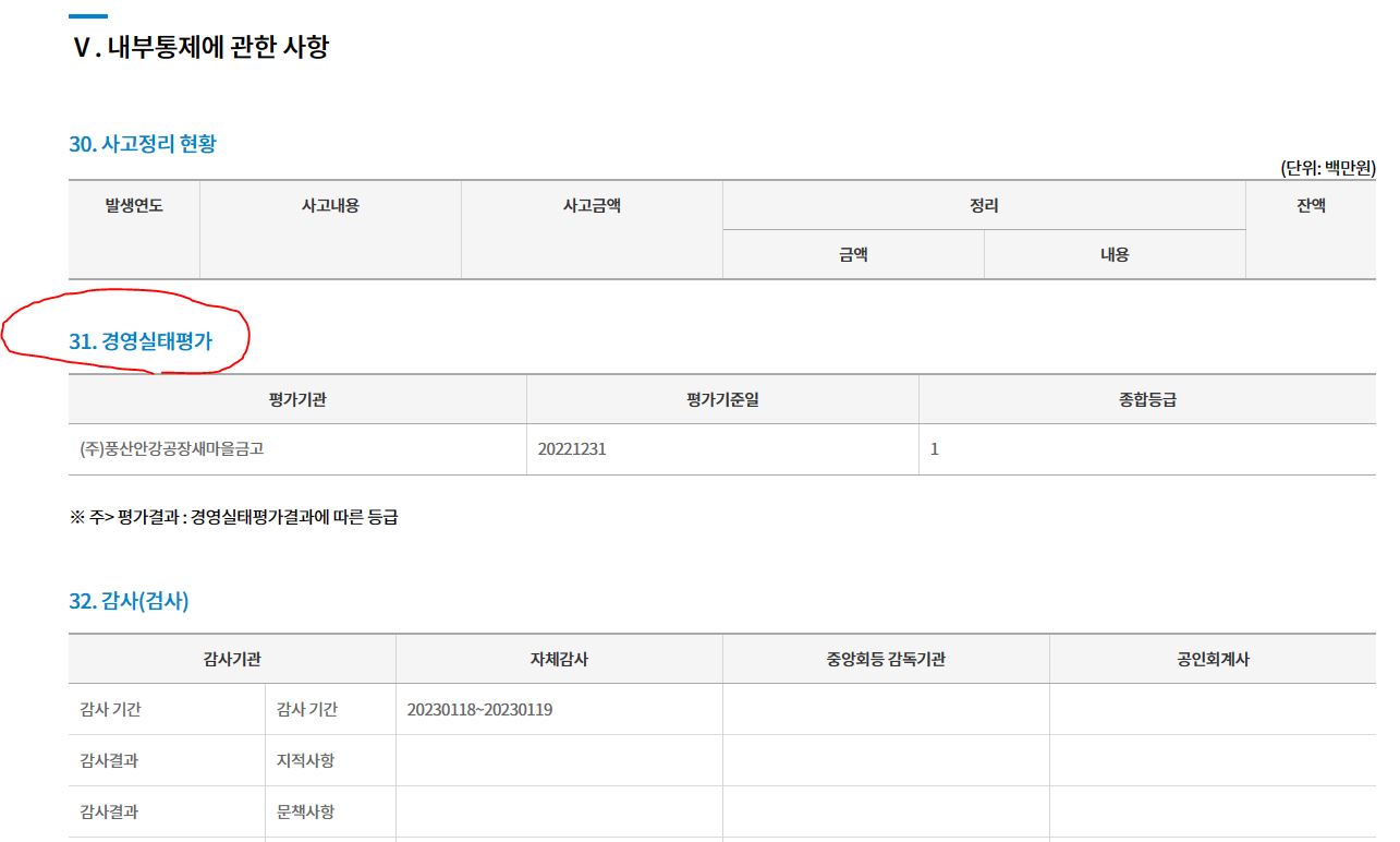 새마을금고 공시 부실여부 판단기준